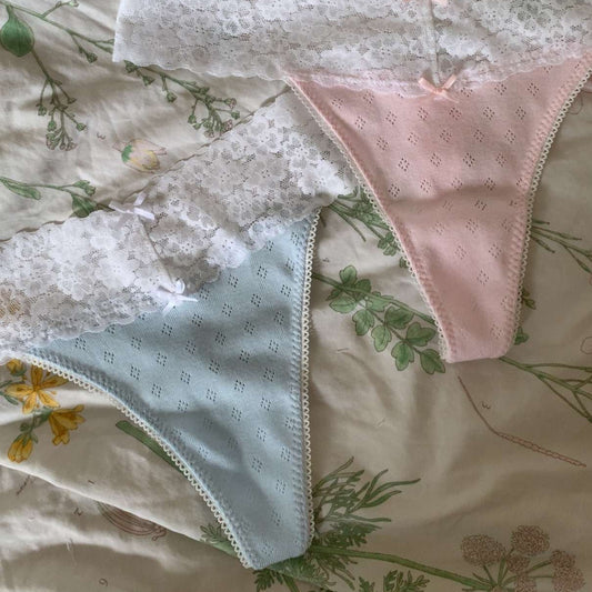 Pink Pointelle Cotton Thong (S)