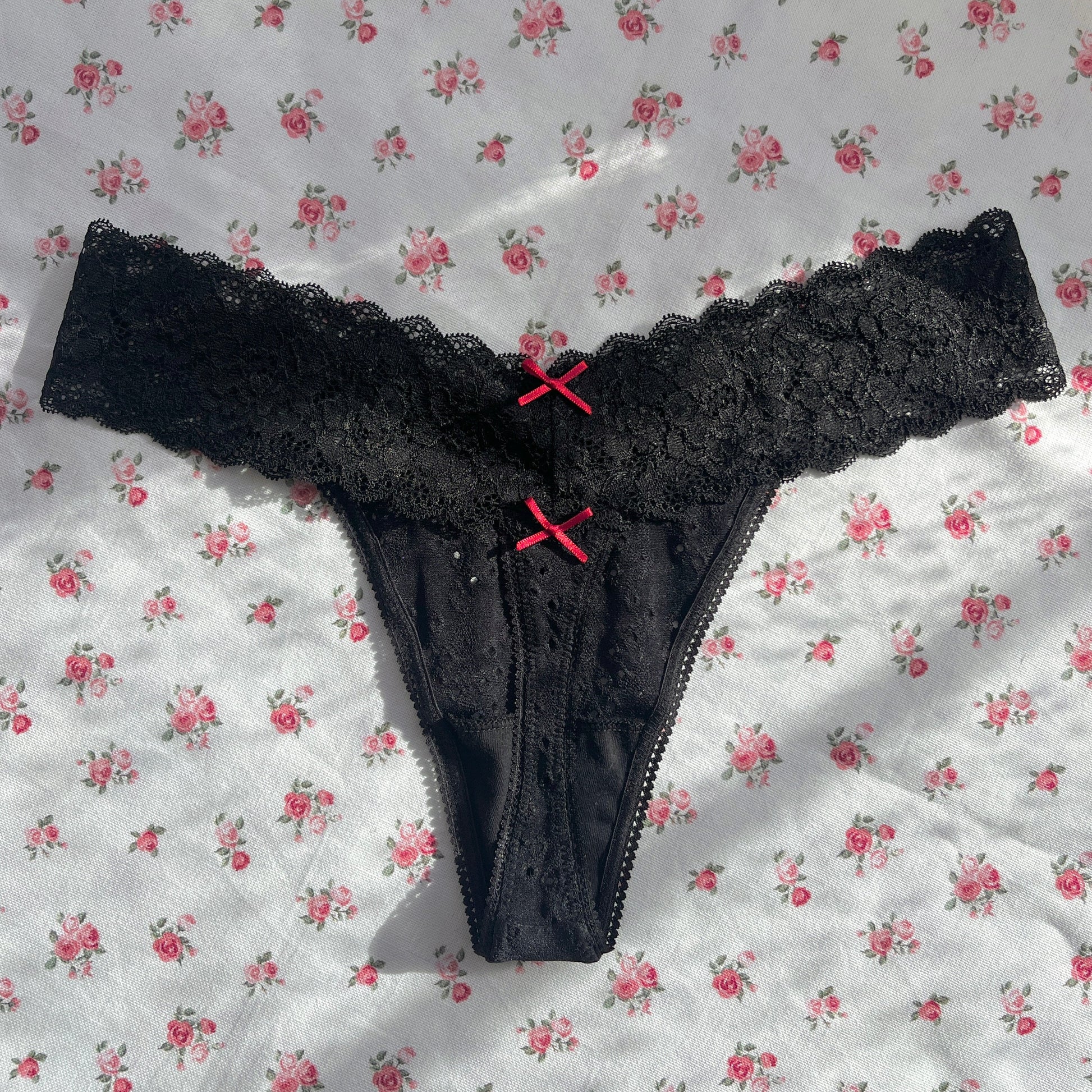 Black Broderie Anglaise Thong